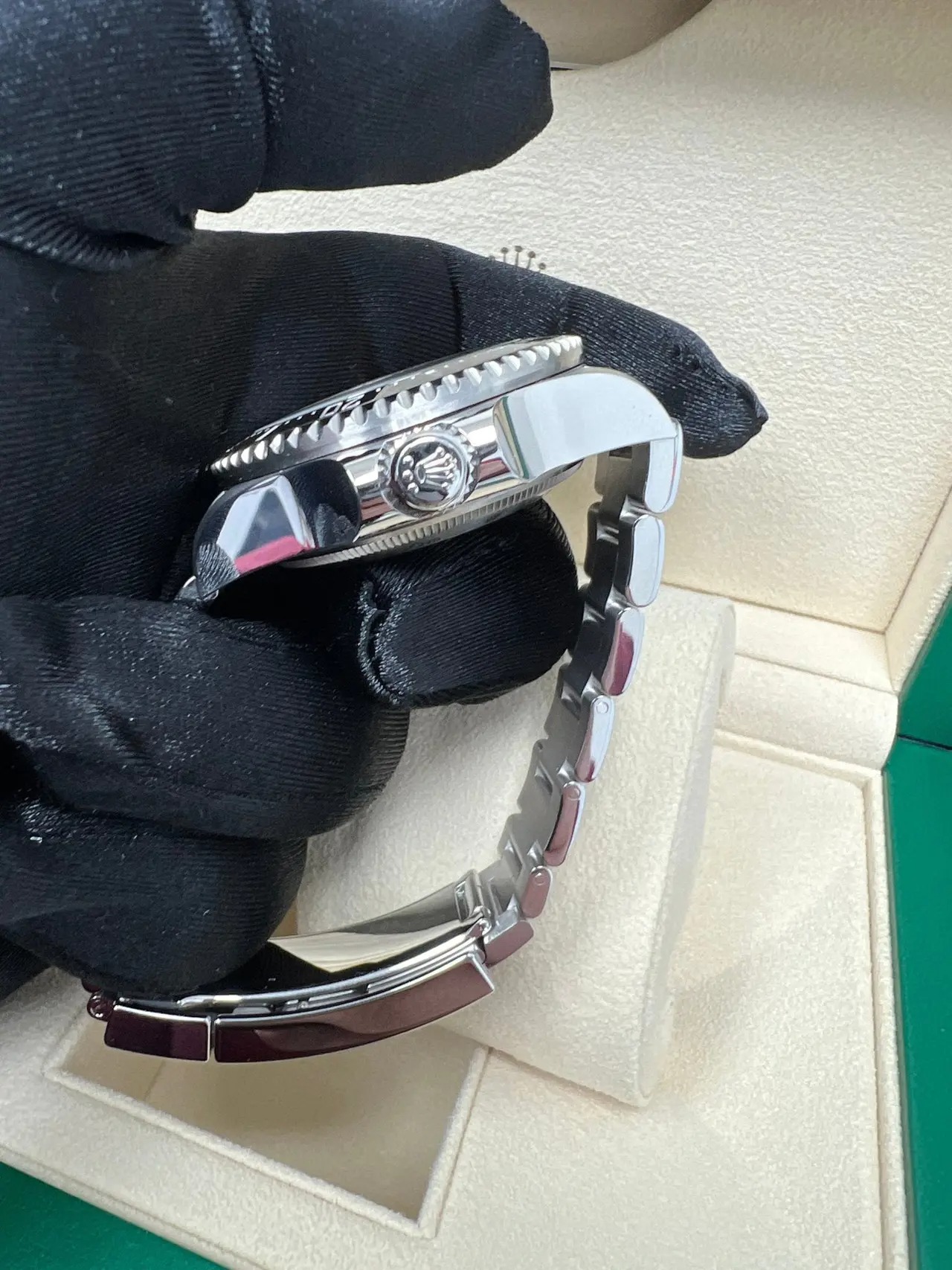 The watch is equipped with an oyster bracelet made of stainless steel with a folding oysterlock safety clasp and an extension link that allows the bracelet to be easily adjusted for use over a diving suit.