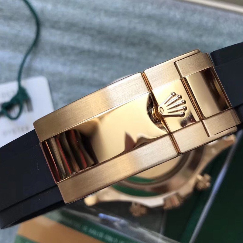 The Daytona’s chronograph feature functions are activated by pushers that screw down like the winding crown when they are not in use, guaranteeing waterproofness to 100 metres. One press to start, stop or reset the chronograph produces a crisp, clear click that was perfected using the most advanced technology. watchmakers also perfected the mechanism to suit the ideal finger pressure on the pushers, and engineered it to provide an instantaneous and accurate start to the timing without sacrificing reliability.