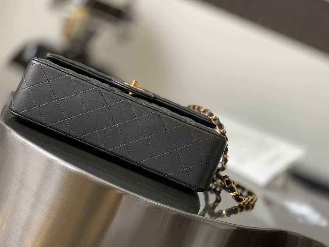 Chanel Charm Like Auth Handbag Sheepskin Black Lock Gold 25x16x7cm