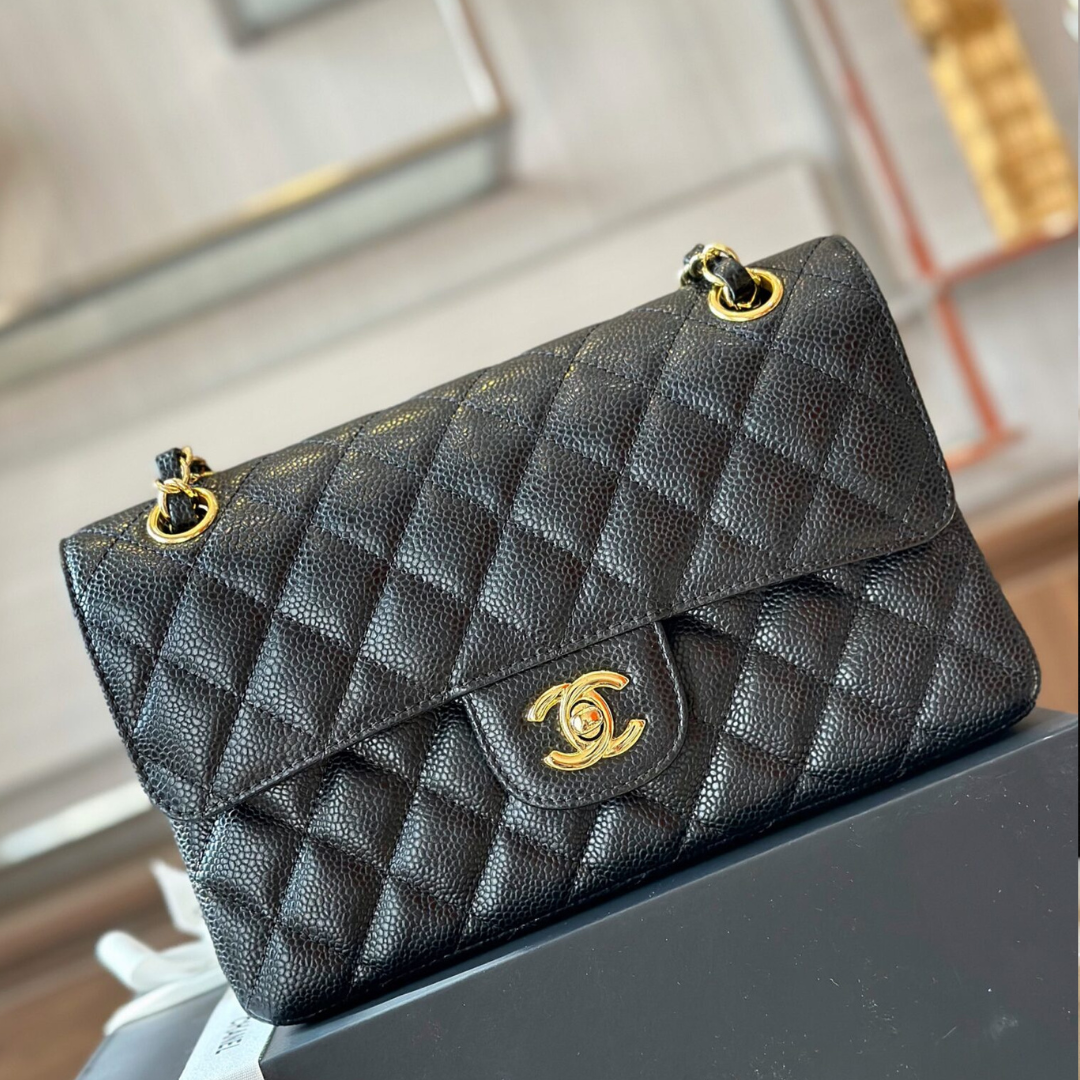 Be the first to review “Chanel Classic Handbags With Lock Gold Black Leather 23cm”