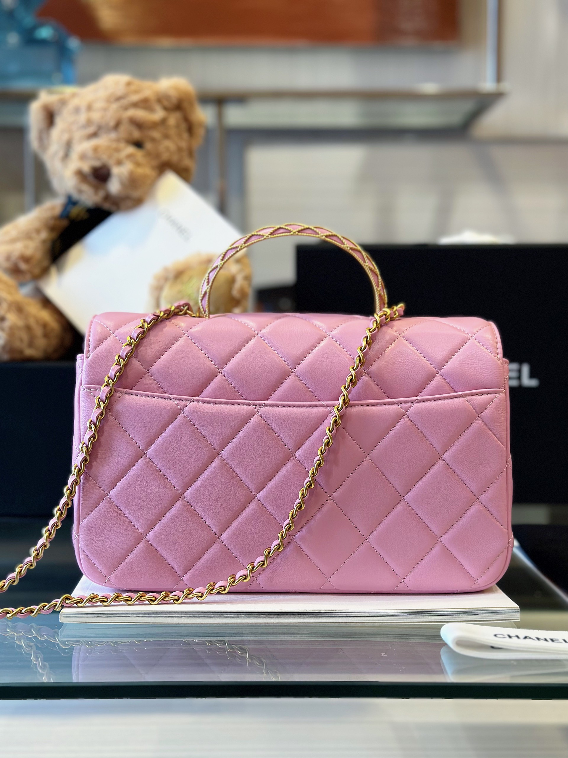 • Chanel Coco Mini Handbags Pink With Lock Gold 22x21cm