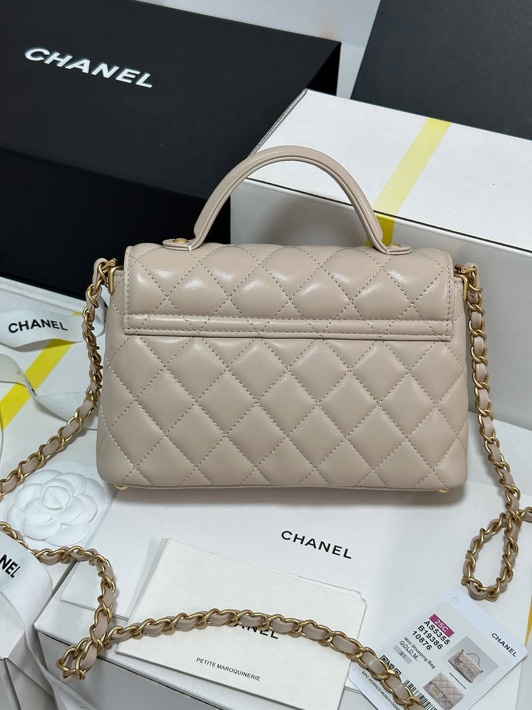 Chanel Beige Leather Small Top Handle Flap Bag