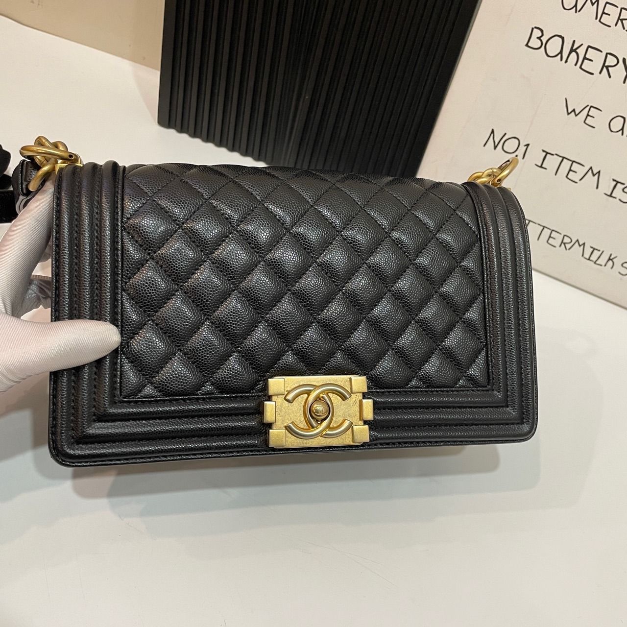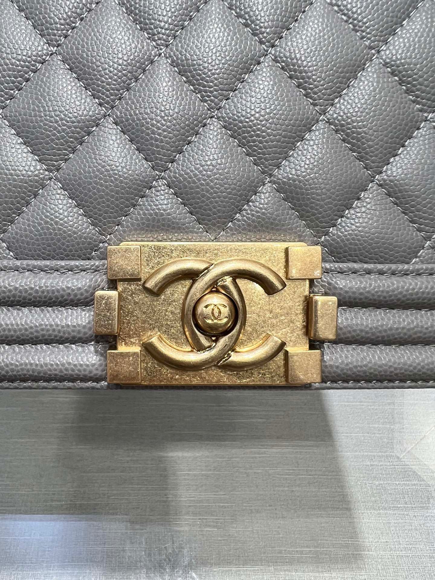 CHANEL BOY BAG MEDIUM 25 GREY CAVIAR GOLD HARDWARE