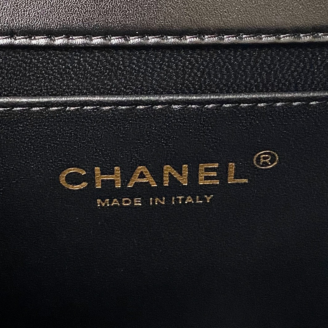 Chanel Handbag Coco Lock Gold Lizard Skin Black 24cm