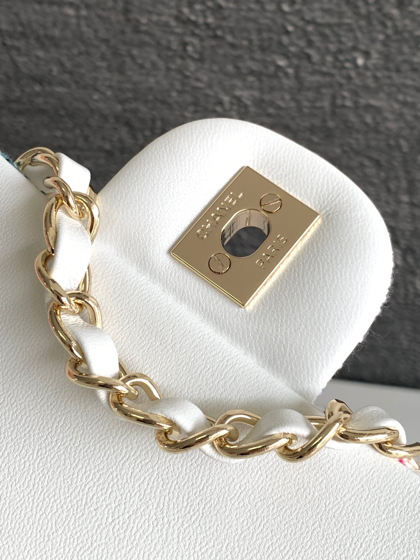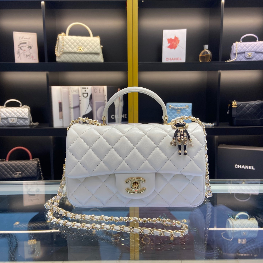 Chanel Handle Charm Like Auth Handbags Lock Gold Demi White 20x12cm