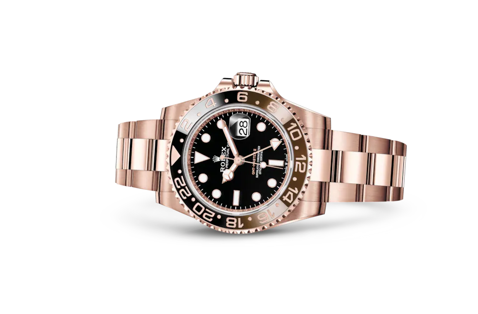 Like all Rolex Professional watches, the GMT-Master II offers exceptional legibility in all circumstances, and especially in the dark, thanks to its Chromalight display. The broad hands and hour markers in simple shapes – triangles, circles, rectangles – are filled with a luminescent material emitting a long-lasting glow.
