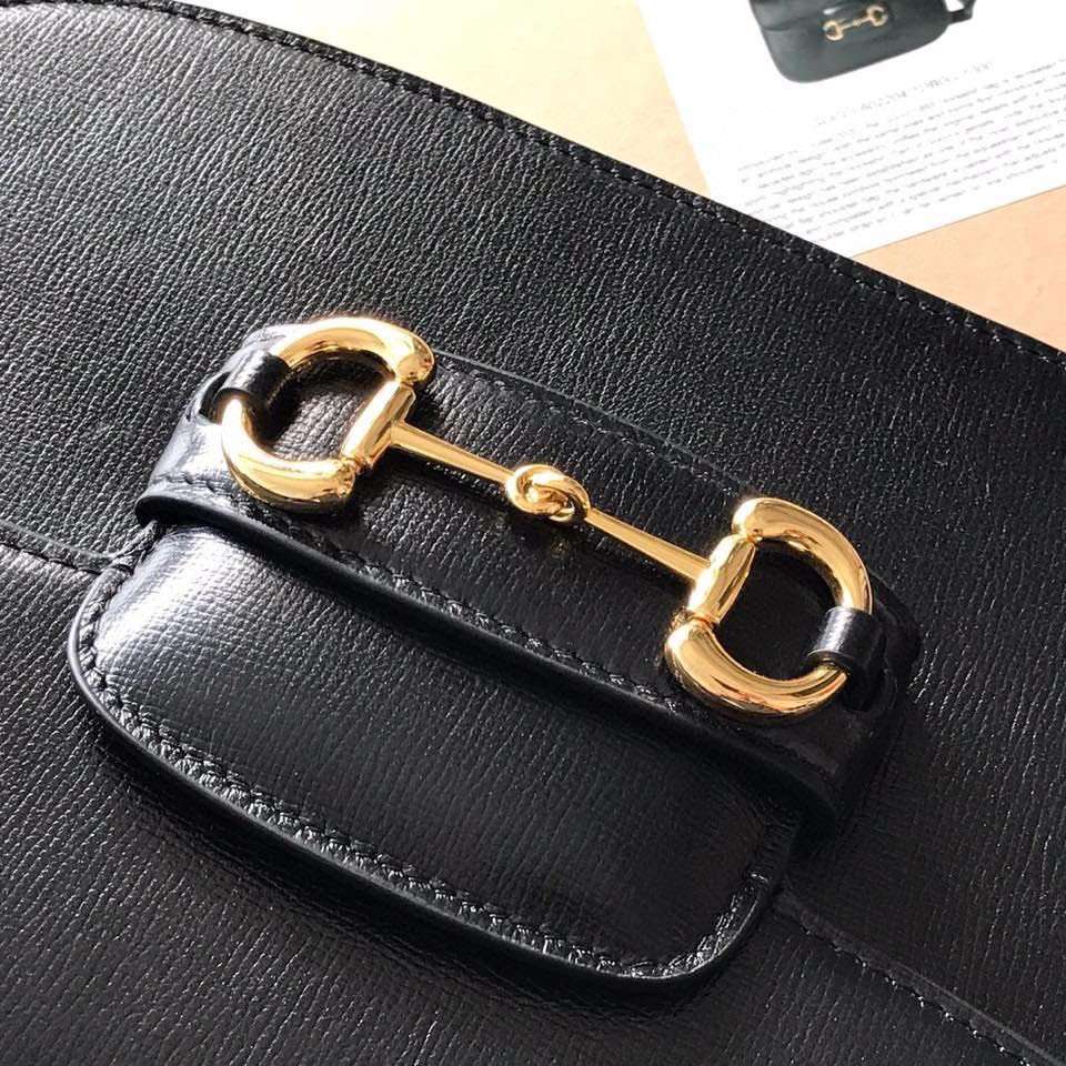 Gucci 1955 Horsebit Like Auth Handbag Black Smooth Leather 25cm