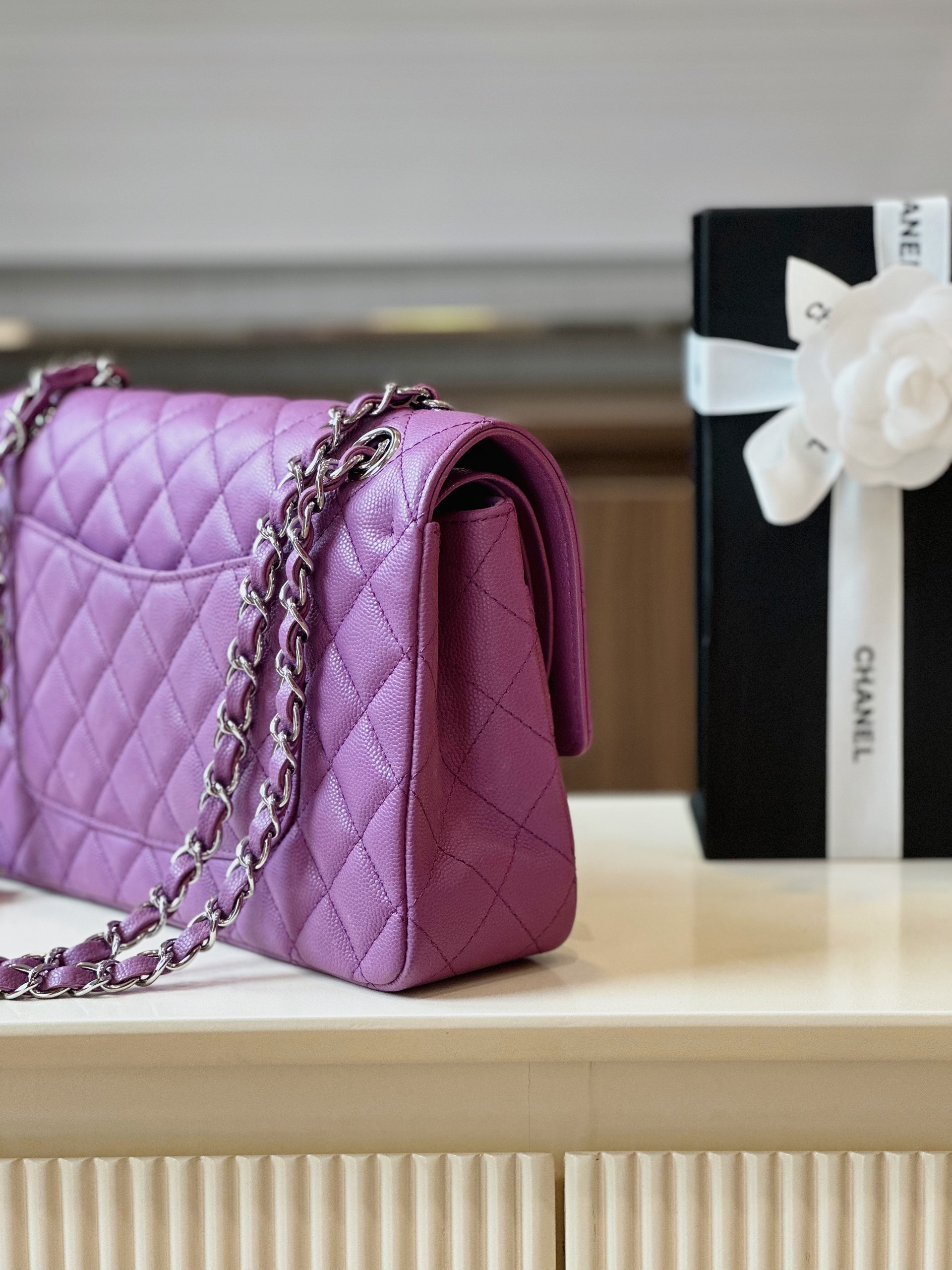 Chanel Classic Handbags Woman’s Purple Lock Silver 25cm