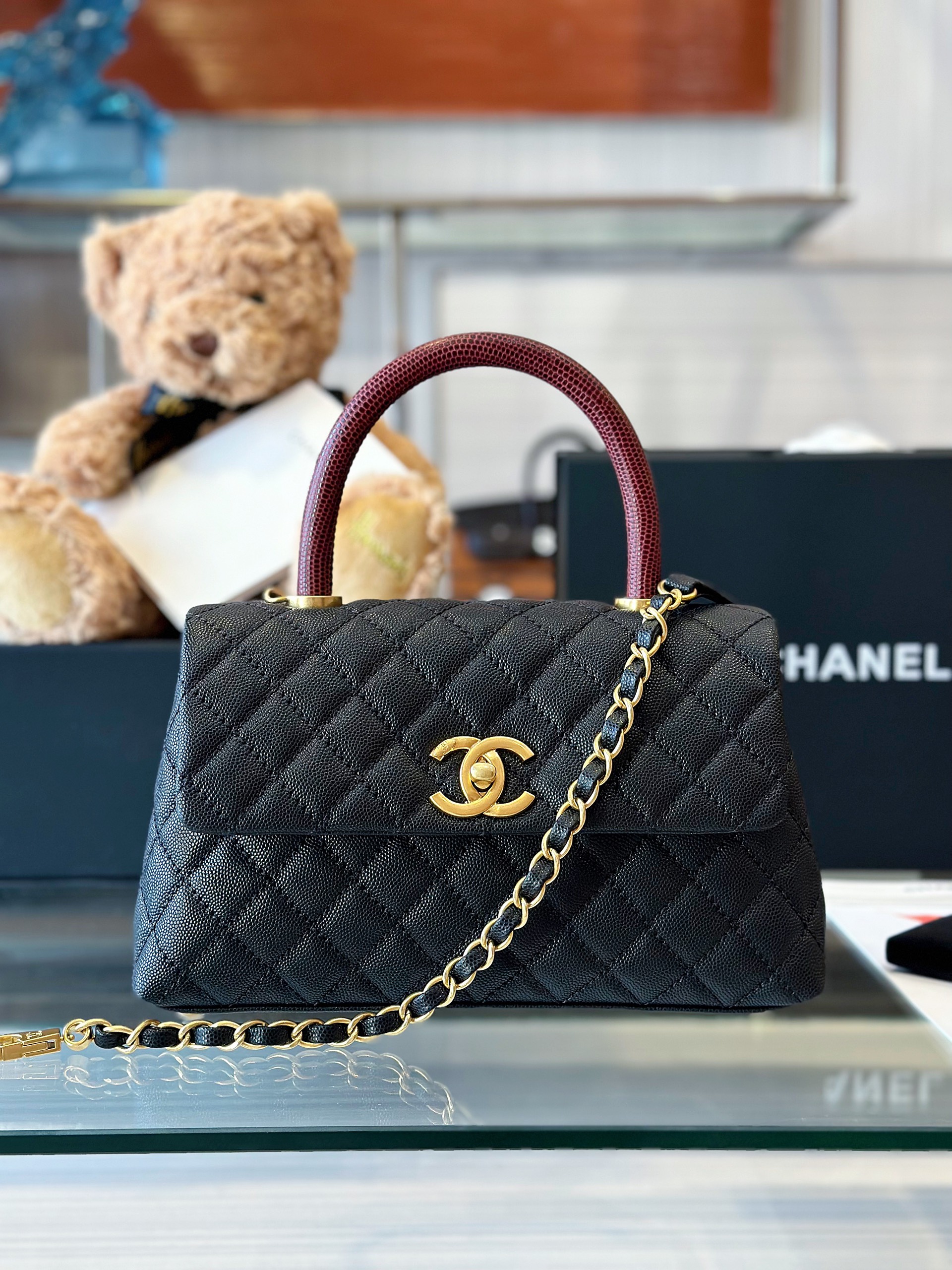 • Chanel Handbag Coco Lock Gold Lizard Skin Black 24cm
