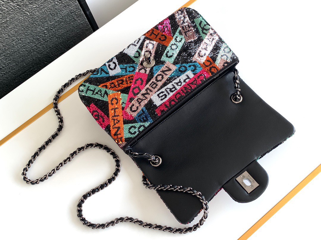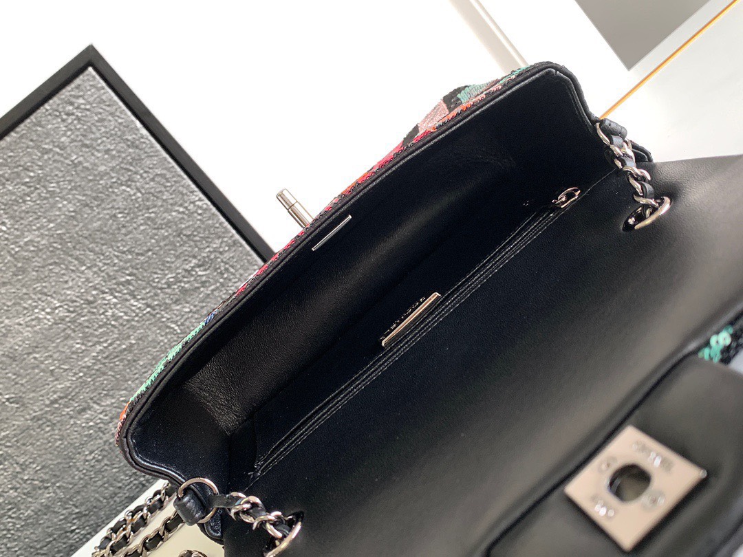 Chanel Mini Pastel Rainbow Sequin Like Auth Handbag 20x14x7cm