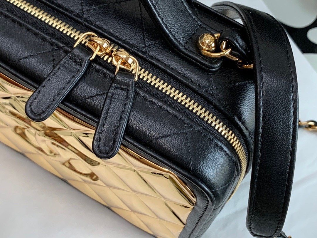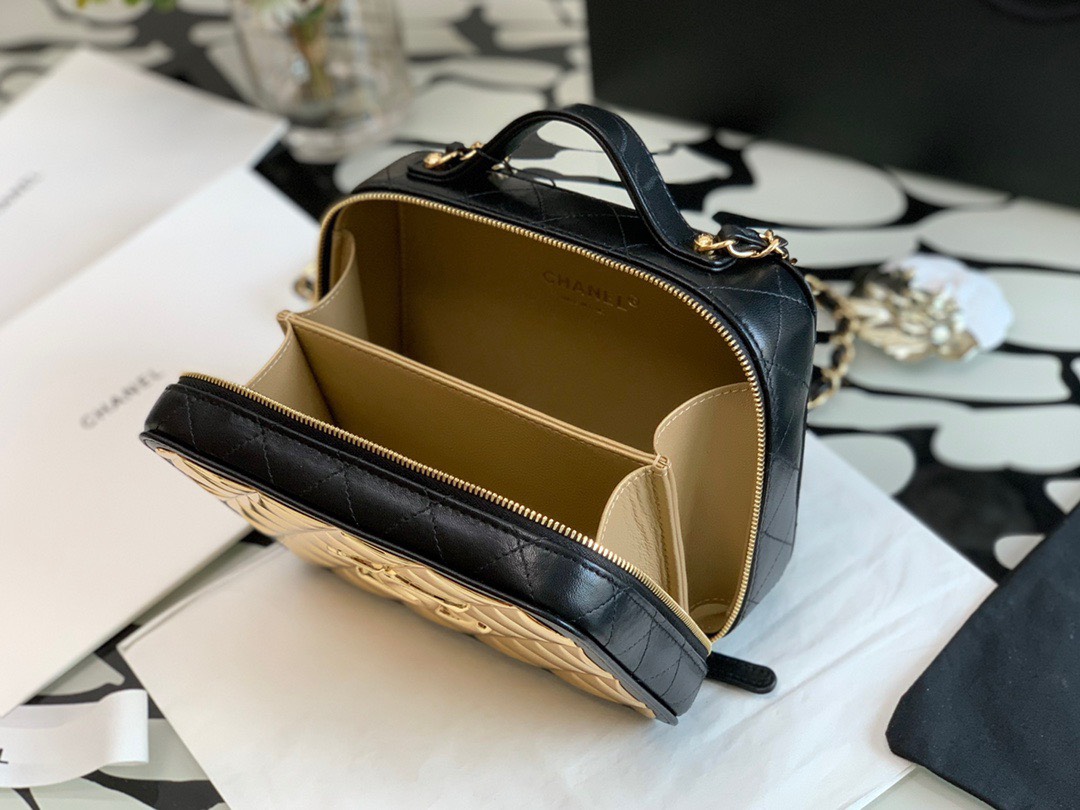 • Chanel Vanity Case Black Yellow Replica 1:1 Box Form Handbags 19cm