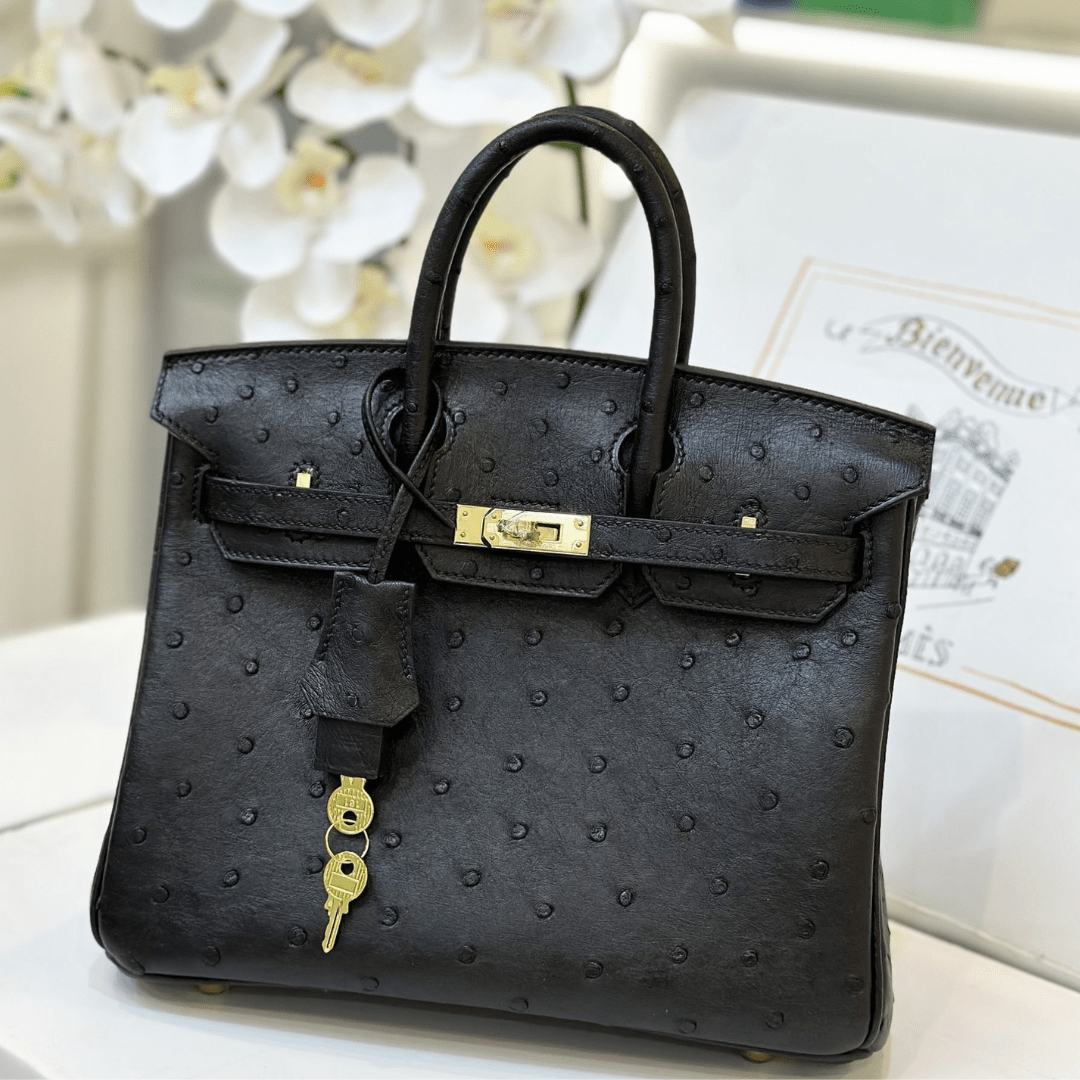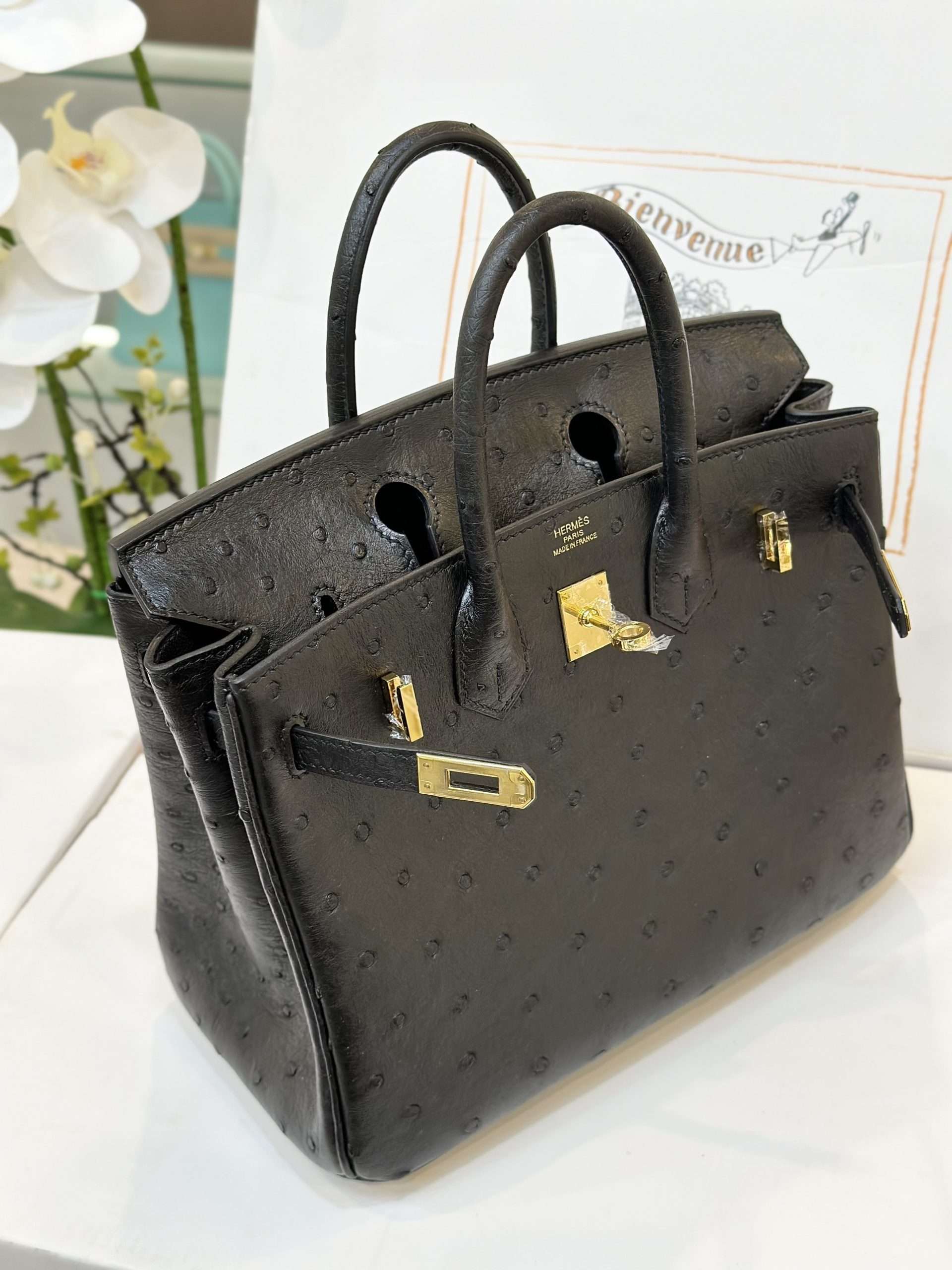 Hermes Birkin 25 Black Ostrich Leather Gold Hardware